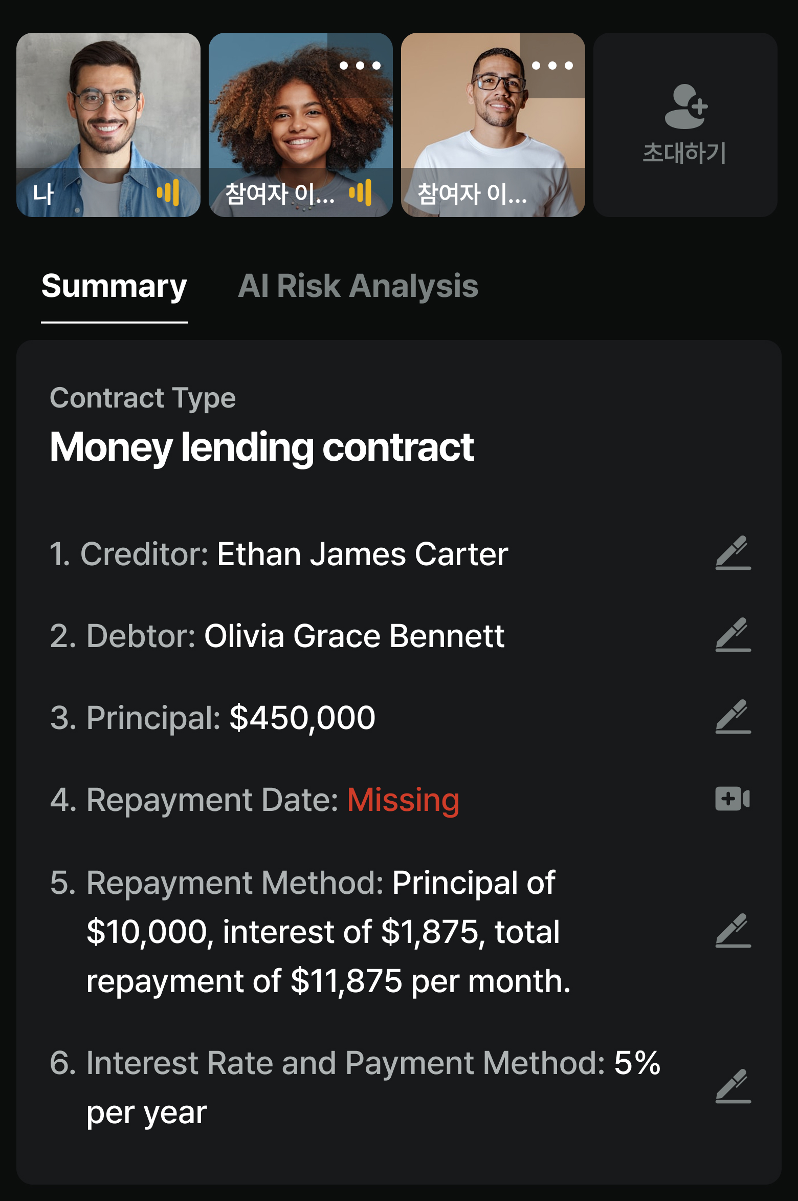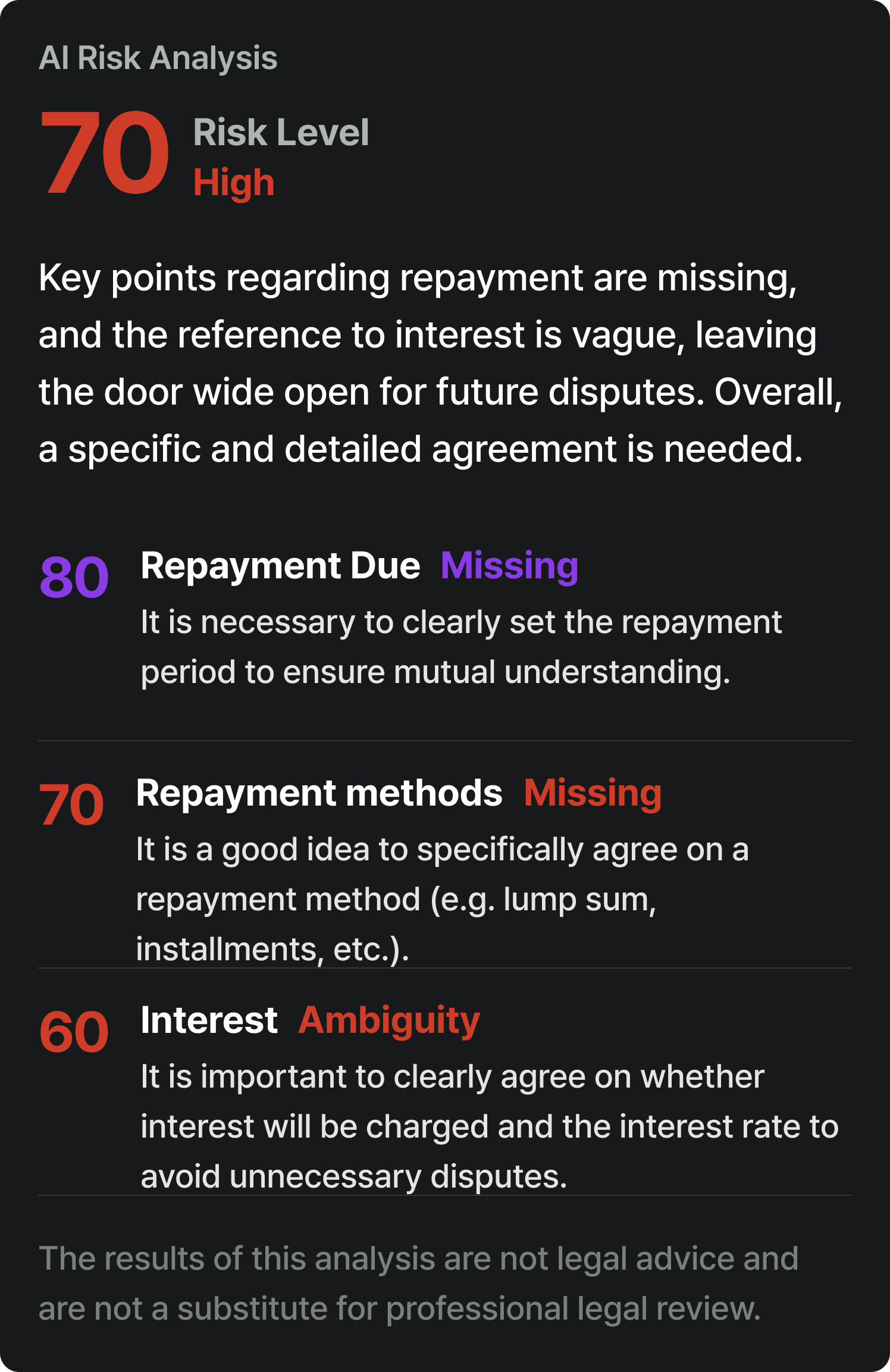 AI analyzes missing or ambiguous key elements in a contract and provides improvement suggestions, helping you create safer and more complete contract.